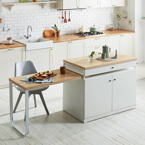 상일리베가구 일마레 홈바 확장형 아일랜드 식탁, 3)수납 확장형 아일랜드식탁_메이플+화이트