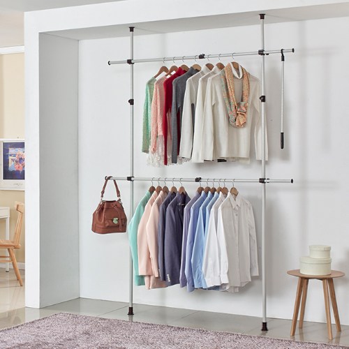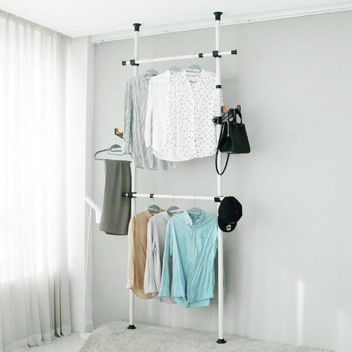 코멧 더블 레일 높이조절 이동식 행거, 화이트