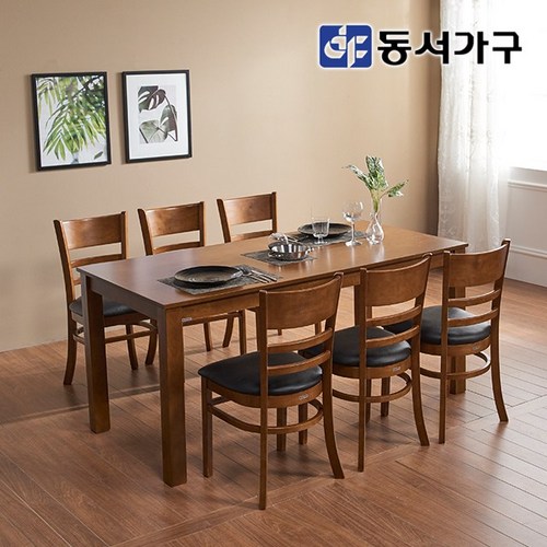 동서가구 아이 6인 원목식탁 + 의자6 DF640453, 엔틱