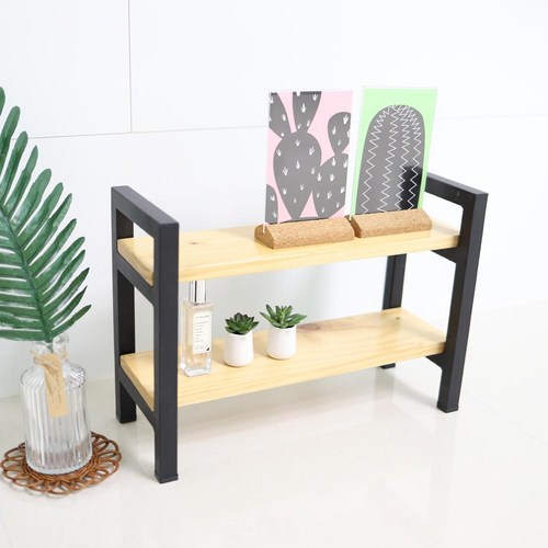 트리스토어 철제 프레임 원목 미니 선반 2단, 원목 + 블랙(프레임)