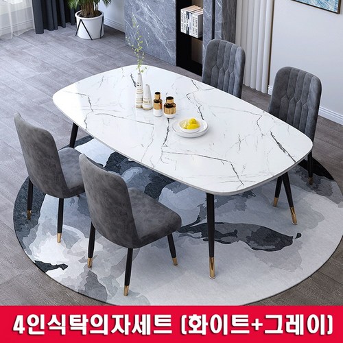 아우스 XML 6인용 4인용식탁세트 대리석식탁세트 세라믹식탁세트 모던식탁의자 북유럽풍식탁 다이닝테이블 식탁세트의자 추가화물비용 없음, 4인식탁의자세트(화이트+그레이)120x70cm