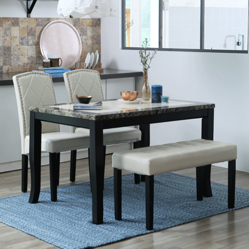베스트리빙 앨빈 코코 4인 벤치형식탁세트, 02.투톤대리석+베이지의자2개+베이지벤치