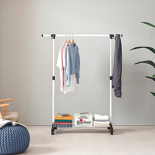 코멧 싱글 레일 높이조절 이동식 행거, 화이트