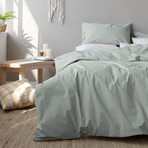 쁘리엘르 브레스 고밀도 워싱 순면 홑겹이불커버, 애쉬그린