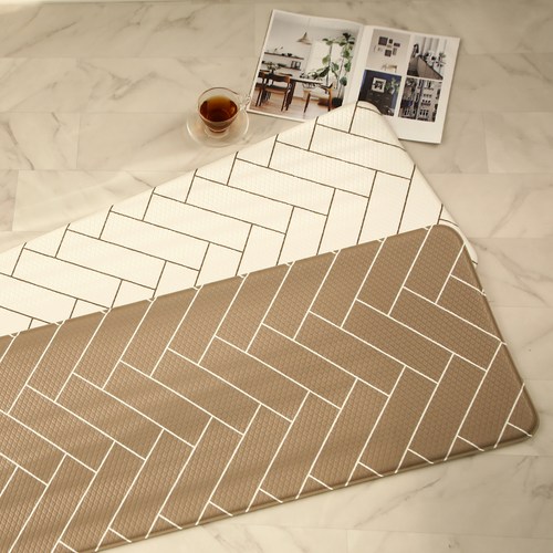코멧 헤링본 양면 쿠션 주방매트, 아이보리+라이트브라운(M)