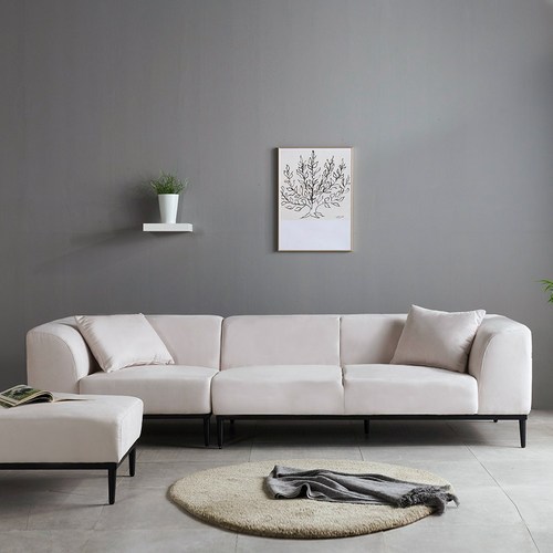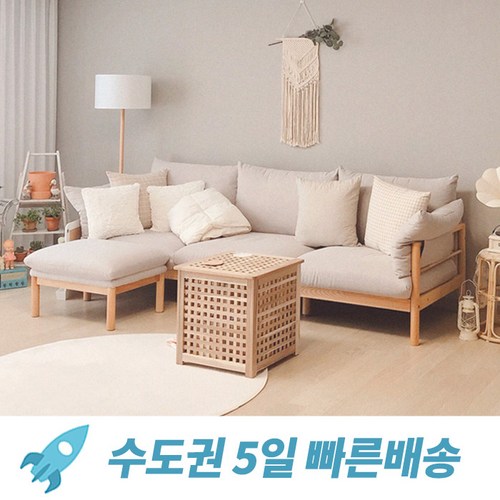 스칸디나 패브릭 4인용 소파 + 쿠션 2p + 스툴 방문설치, 그레이