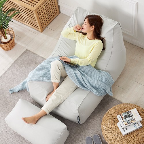 빈백소파 1인용 모찌 대형 빈백 풋스툴 포함, 베이지
