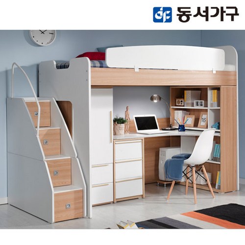 동서가구 컨셉트MU-E122 수납형계단 벙커침대 h형책상 옷장세트 DF903041, 가드:화이트 / 책상상판:오크