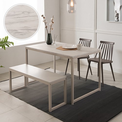 리바트온라인 베이킹 4인 화이트 마블 식탁세트(벤치형), 식탁/벤치 화이트 + 체어A 그레이