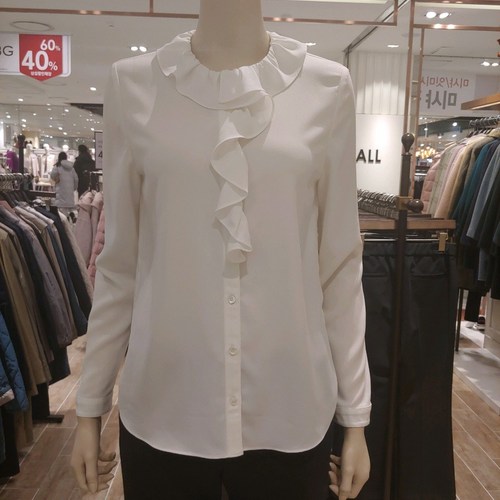 BCBG 비씨비지 봄느낌물씬!! 봄 간절기 목프릴 시폰 긴팔 블라우스